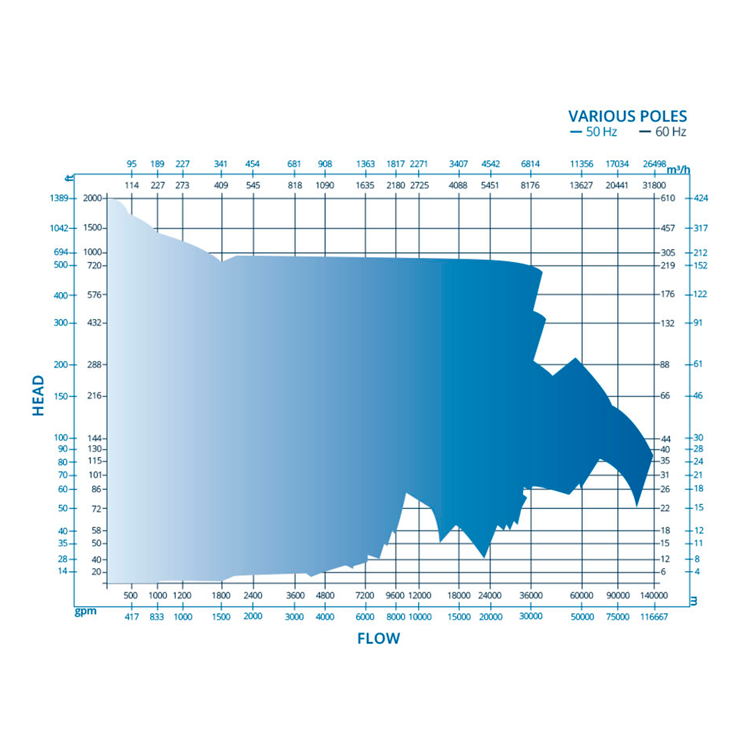 Capacidad hasta 31,800 m³/h (140,000 gpm)